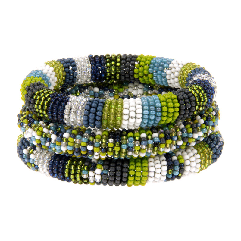 3 Pc Set of Soan Spring Coil Bracelets in Assorted Crew Blue. $6ea