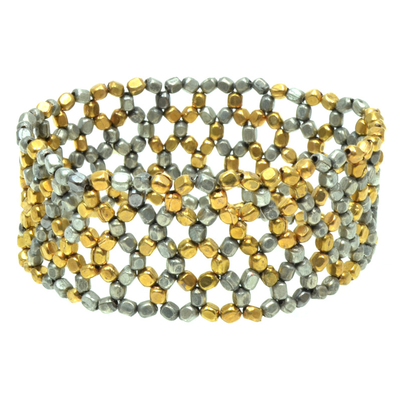 Short metal nugget bead crocheted stretch cuff.