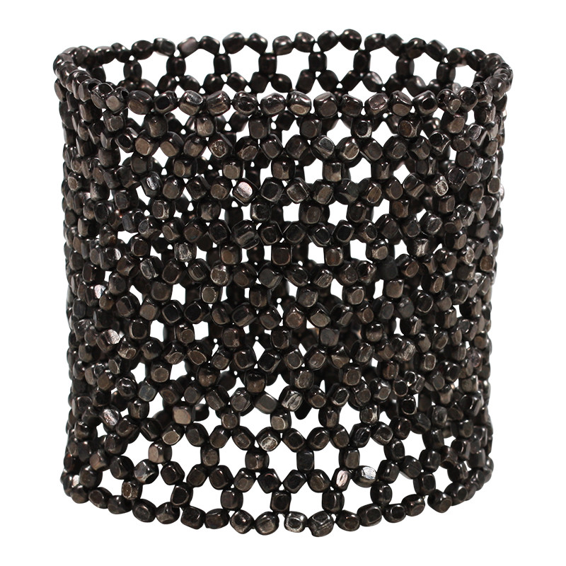 Tall Metal Nugget Crocheted Cuff in Gunmetal.