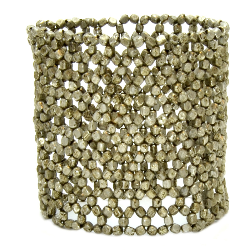 Tall Metal Nugget Crocheted Cuff in Silver.