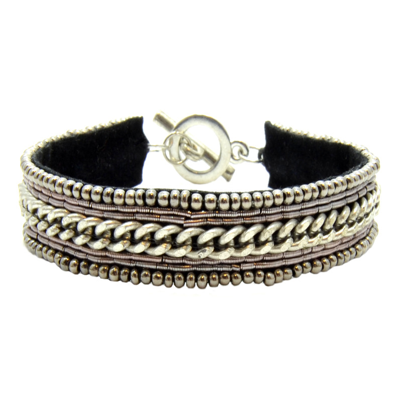 Chain Centered Zari Bracelet in Pewter, Silver.
