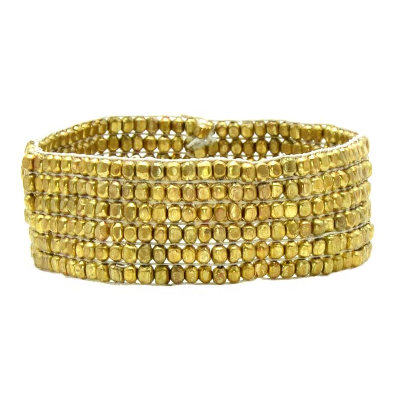 6 Row Metal Nugget Stretch Cuff in Gold.