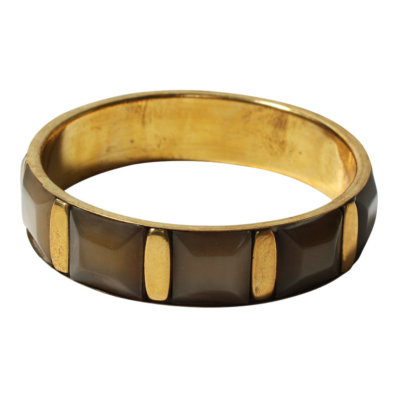 Brass bangle with faceted square horn inlay. Handmade.