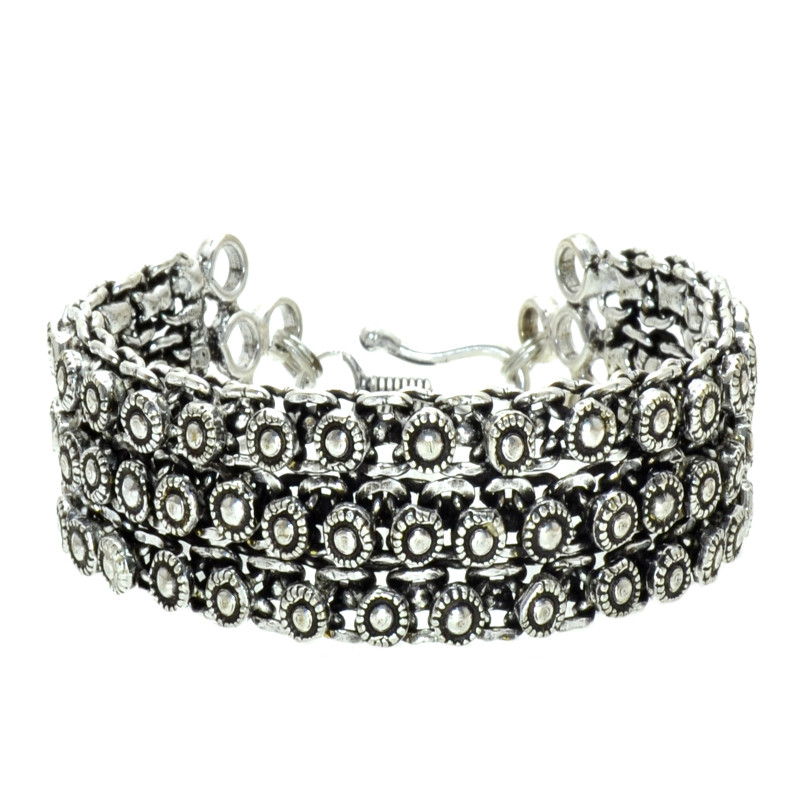Metal circles triple row bracelet.