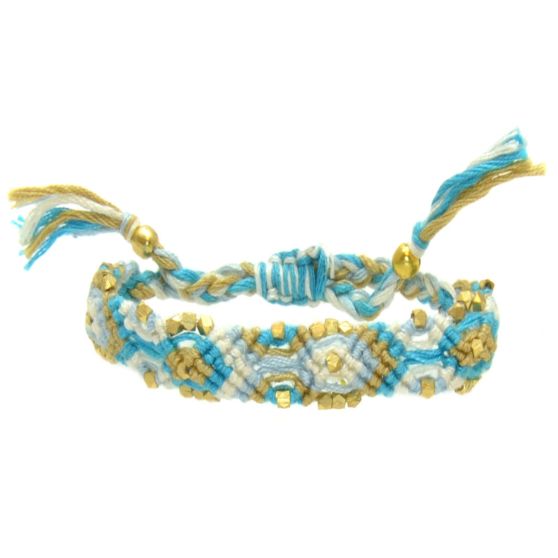Woven Cotton & Metal Nugget Bracelet in Caribe.
