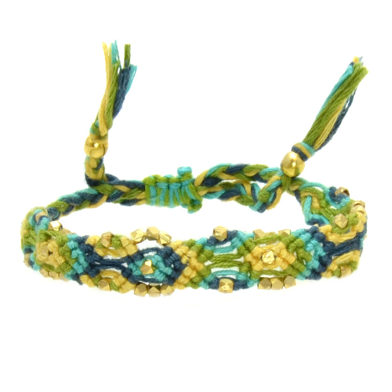 Woven Cotton & Metal Nugget Bracelet in Turquoise, Lime, Yellow.