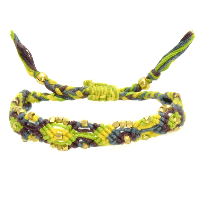 Woven Cotton & Metal Nugget Bracelet in Purple, Navy, Lime, Yellow.