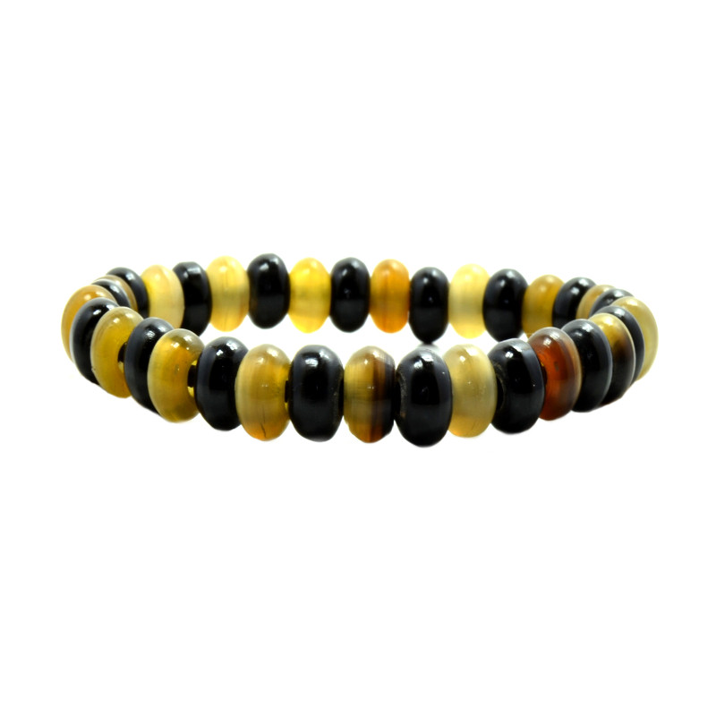 Alternating Horn Rounded Button Beads Bracelet in Black, Amber.