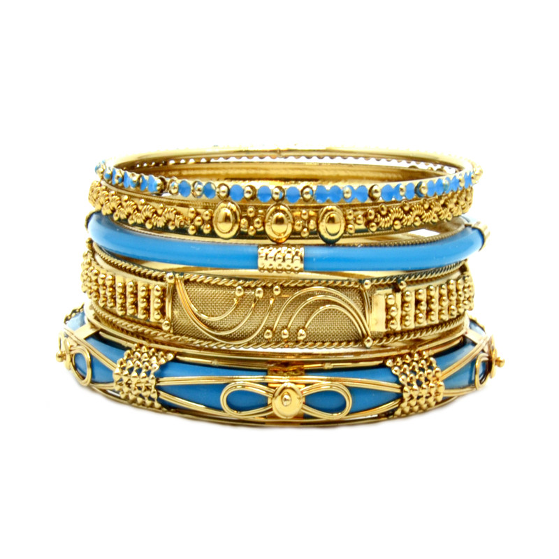 5pc Set of Gold Metal & Blue Resin Bangles.
