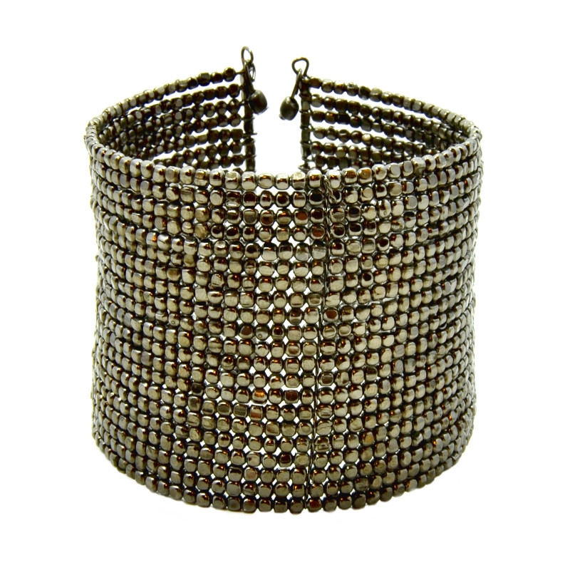 21 Row 2" Metal Nugget Open Cuff in Gunmetal.