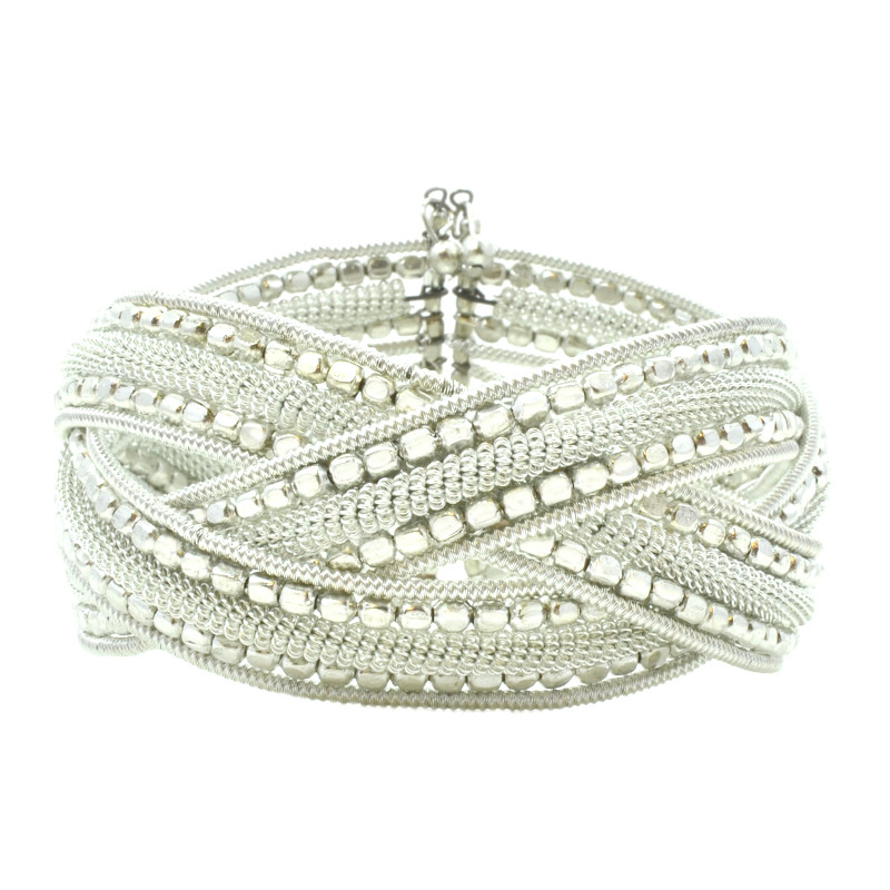 3 Row Braided Nugget Bead & Wire Cuff in Silver.