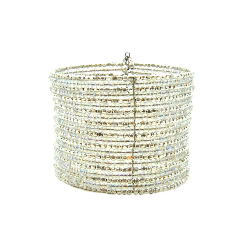 Striped Style Bead & Wire Cuff in Silver.