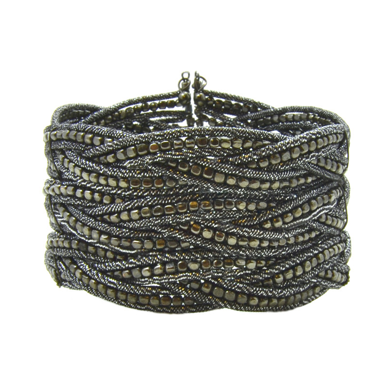 9 Row Braided Nugget Bead & Wire Cuff in Gunmetal.