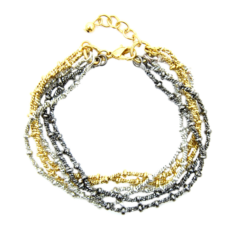 6 Strand Textured Metal Chain Bracelet in Tri-color.