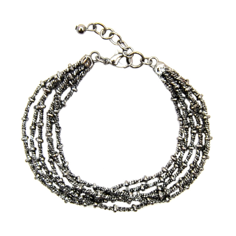 6 Strand Textured Metal Chain Bracelet in Gunmetal.