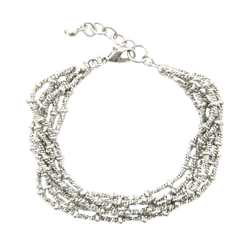 6 Strand Textured Metal Chain Bracelet in Silver.