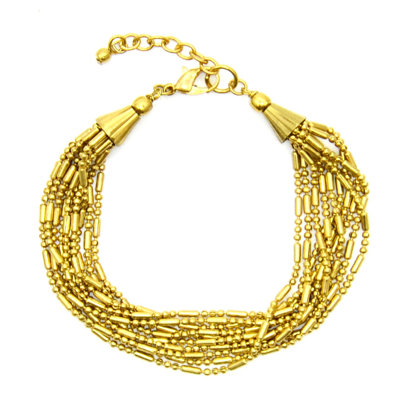 10 Strand Metal Bead & Tube Chain Bracelet in Gold.