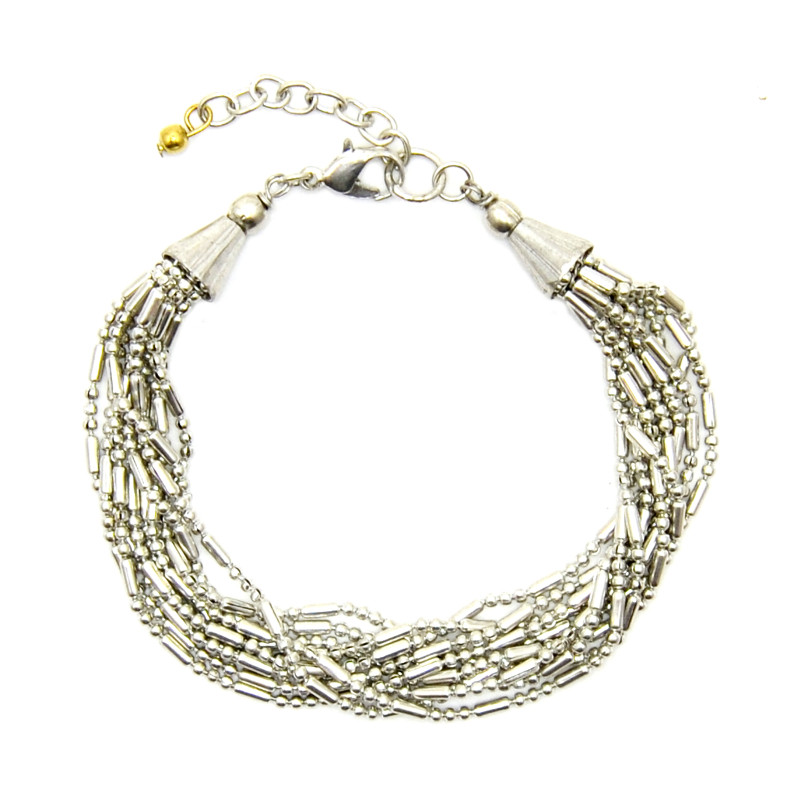 10 Strand Metal Bead & Tube Chain Bracelet in Silver.