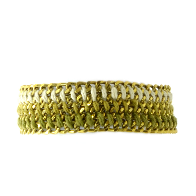 Woven 3 Row Chain & Thread Bracelet, Gold & Clover.