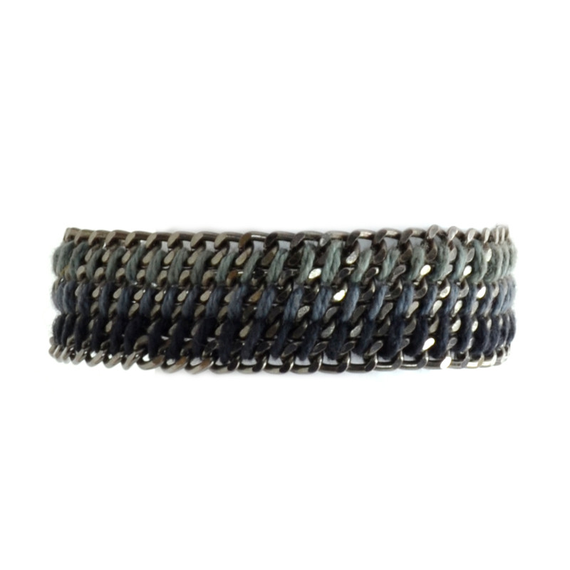 Woven 3 Row Chain & Thread Bracelet, Gunmetal & Charcoal.