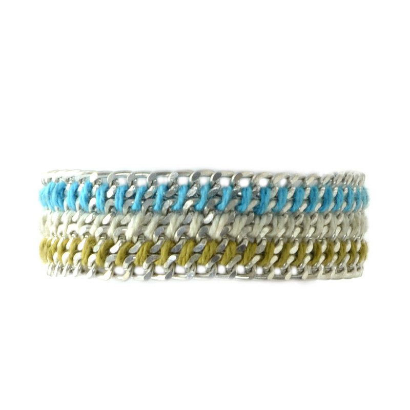 Woven 3 Row Chain & Thread Bracelet, Silver & Caribe.