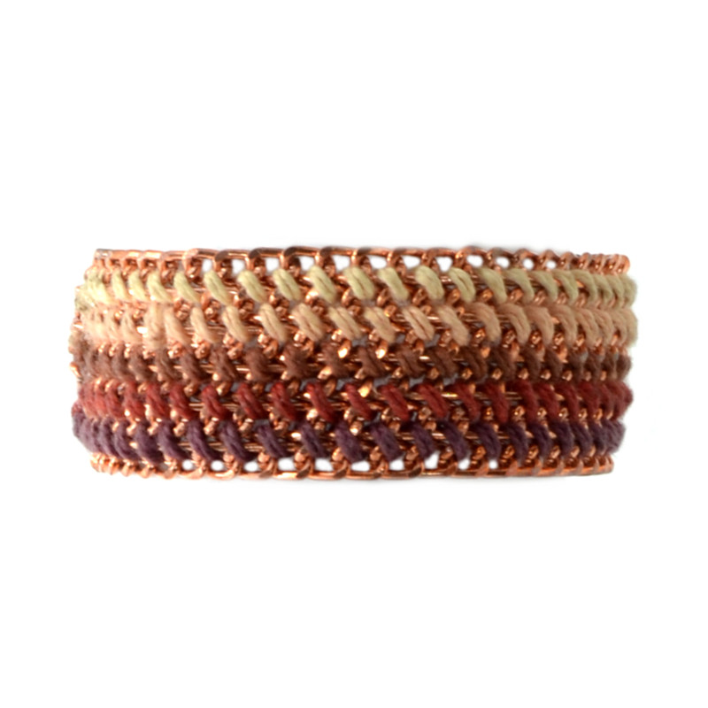 Woven 5 Row Chain & Thread Bracelet, Copper & Coppertone.
