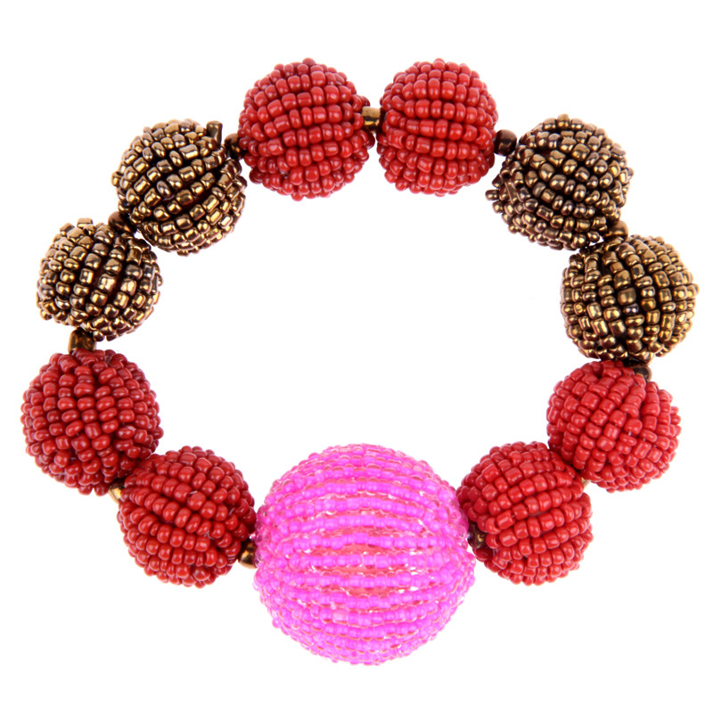 Galaxy Large Beaded Ball Bracelet in Coral Mix.