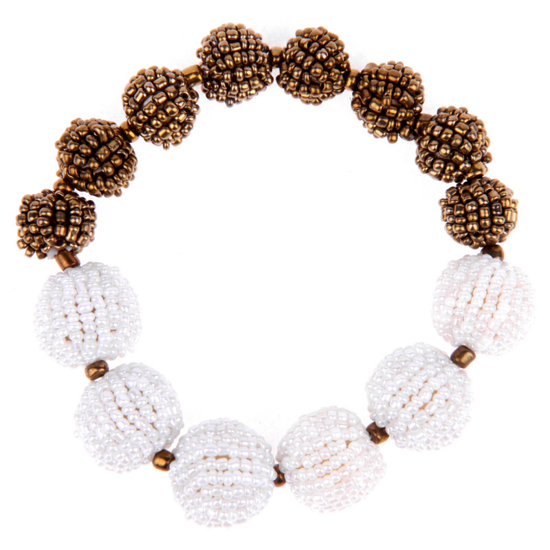 Flip Flop Beaded Ball Bracelet in Cream, Bronze.