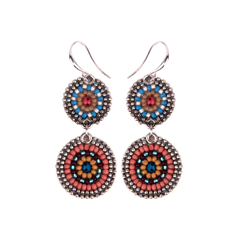 Soan small 2 circle earrings. Appliqued, metal earwire.