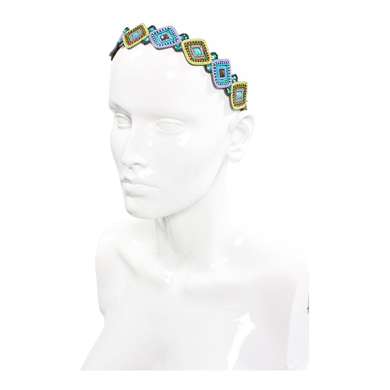 Soan diamonds style headband. Appliqued with elastic at back.