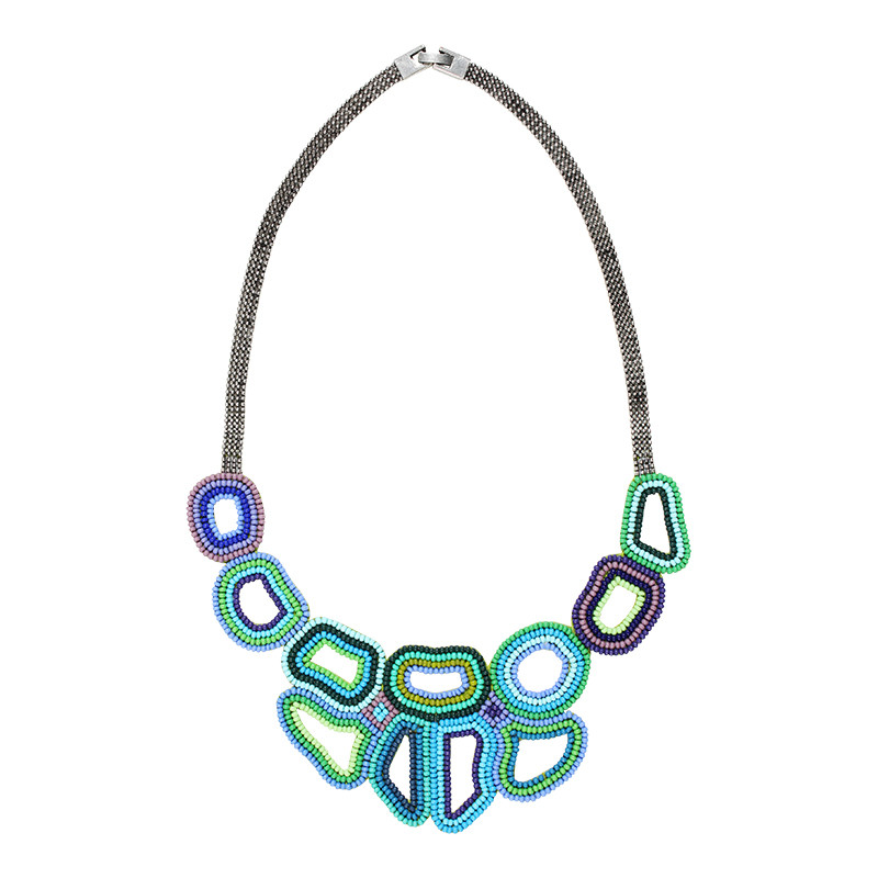 Soan Abstract Loops Necklace in Cool Colors.
