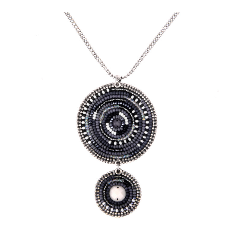 Soan 2 Circle Beaded Pendant in Black Grey.