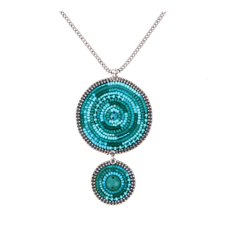 Soan 2 Circle Beaded Pendant in Kandara Blue.