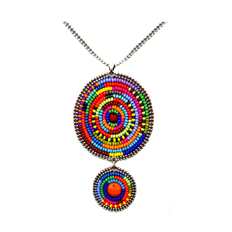 Soan 2 Circle Beaded Pendant in Multi-Color.