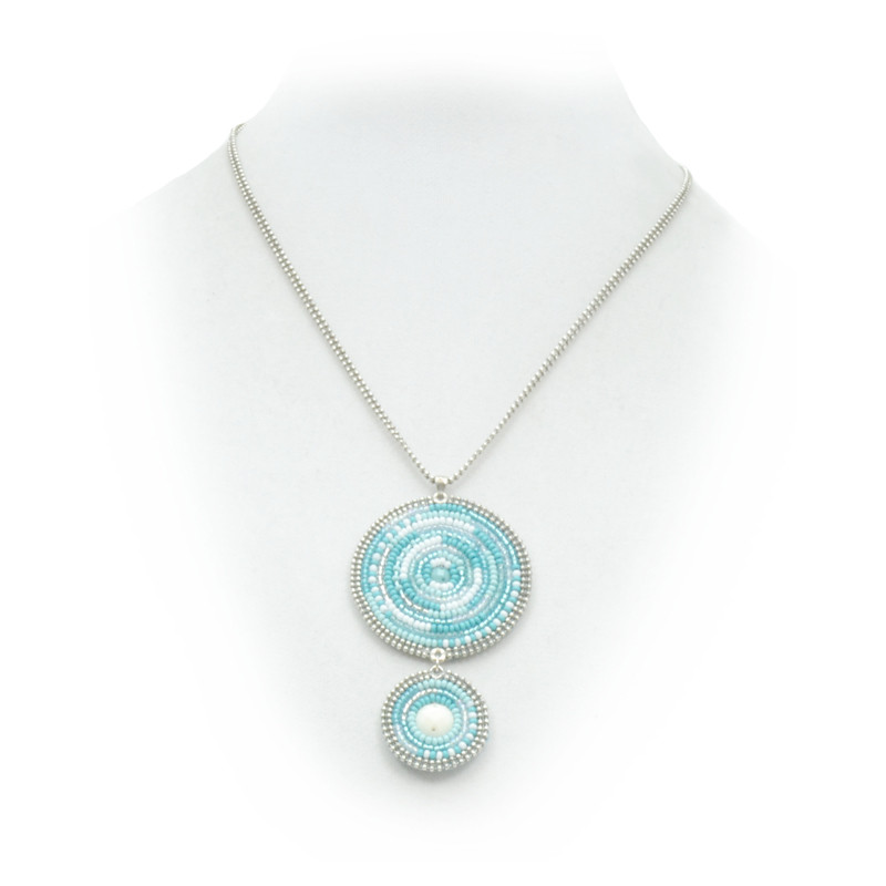 Soan 2 Circle Beaded Pendant in Ocean.