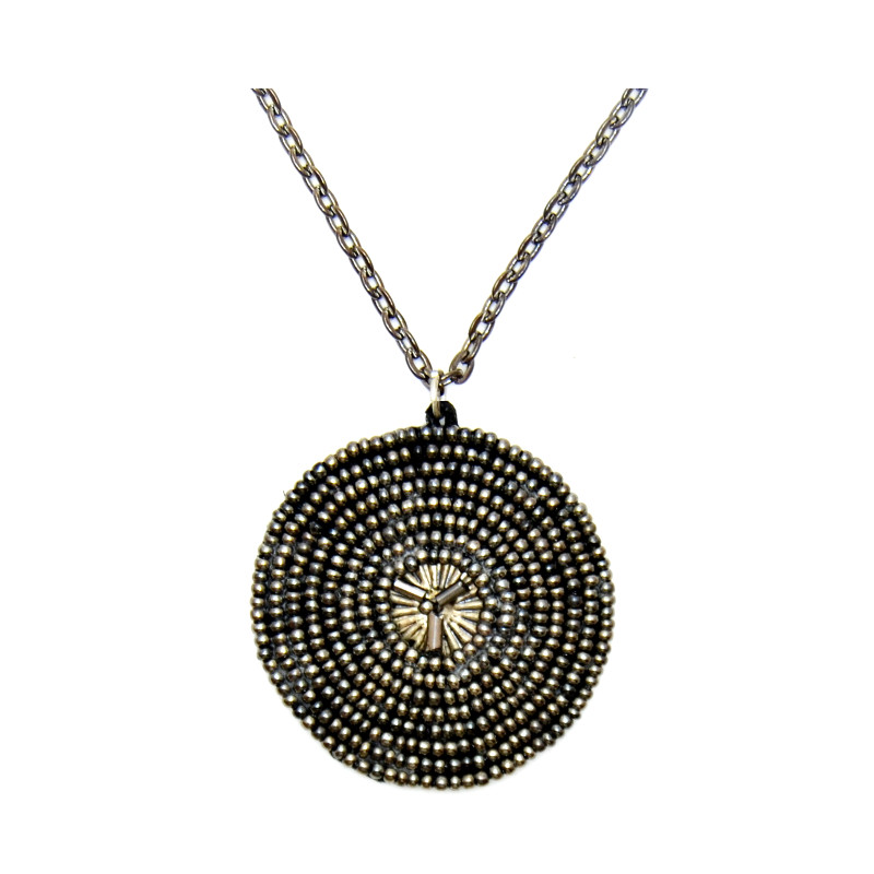Appliqued Bead Medallion on Metal Chain in Pewter.