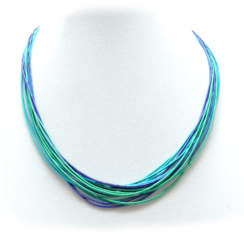 Zari Wire Multi Strand Necklace in Turquoise, Blue.