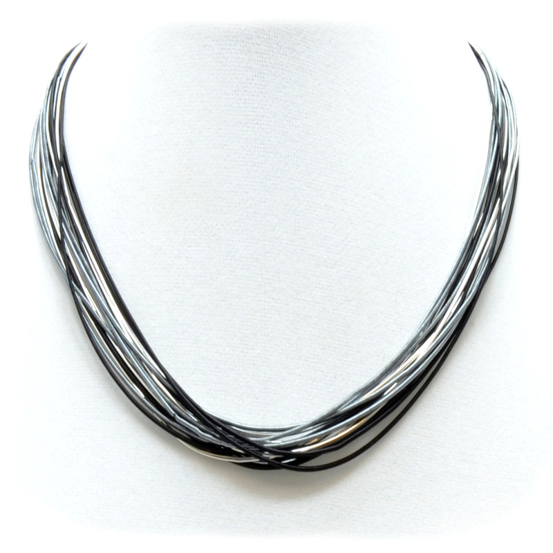 Zari Wire Multi Strand Necklace in Black, Silver, Grey.