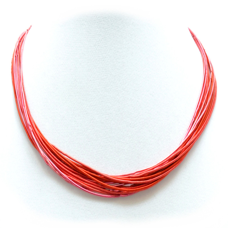 Zari Wire Multi Strand Necklace in Red, Pink, Orange.