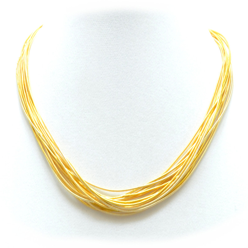 Zari Wire Multi Strand Necklace in Gold, Yellow.