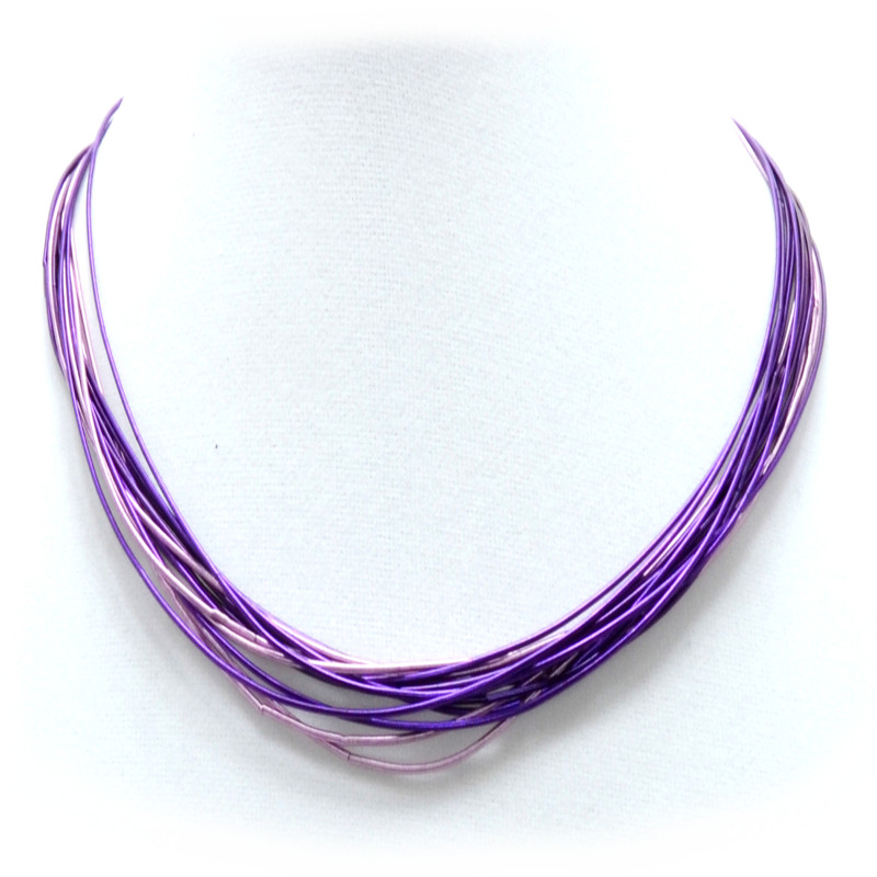 Zari Wire Multi Strand Necklace in Purple, Mix.