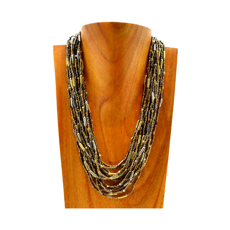 Metal Bead & Tube Chain Cascade Necklace in Gold.