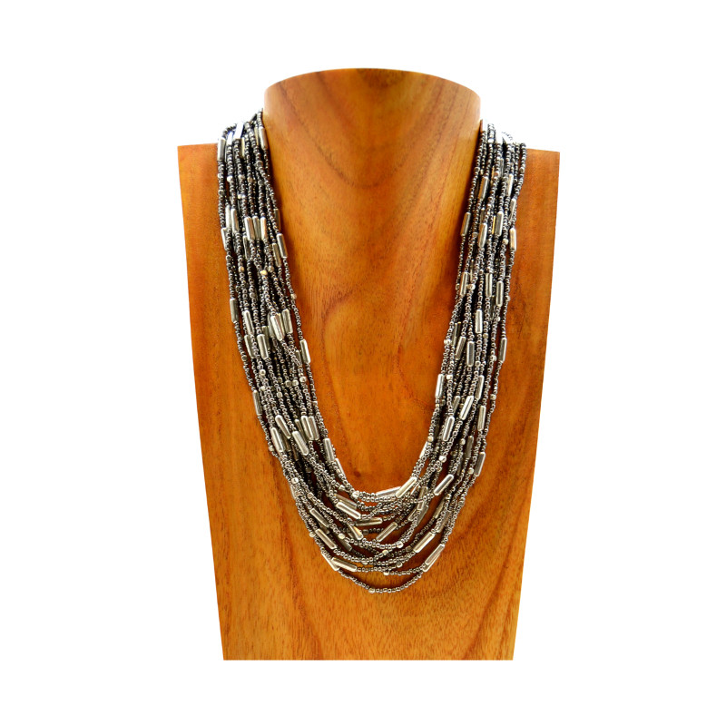 Metal bead & tube chain cascade necklace.