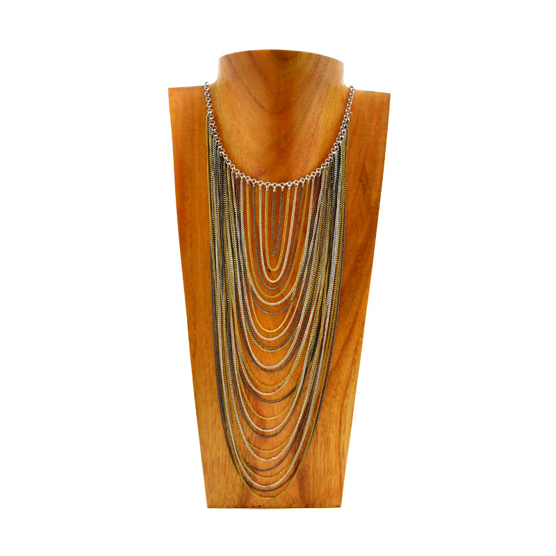 20-22" Draping Cascade Necklace in Tricolor Metal.