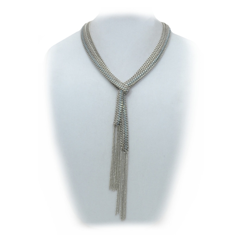 60" Silver Chain & Thread Scarf Necklace in Moonlight.