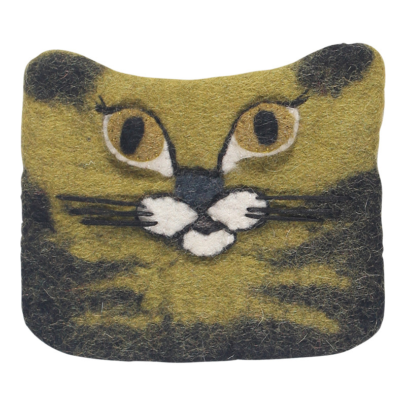 Hand felted & appliqued cat coin purse. Zippered closure, 100% cotton lining. Handmade in Nepal.