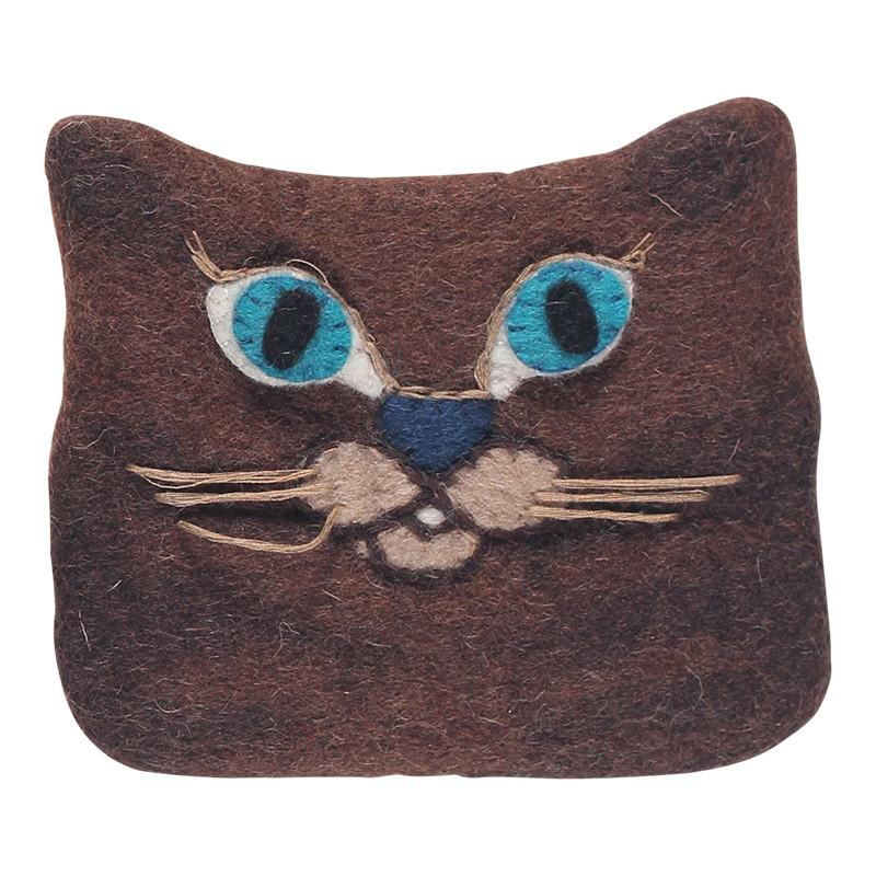 Hand felted & appliqued cat coin purse. Zippered closure, 100% cotton lining. Handmade in Nepal.