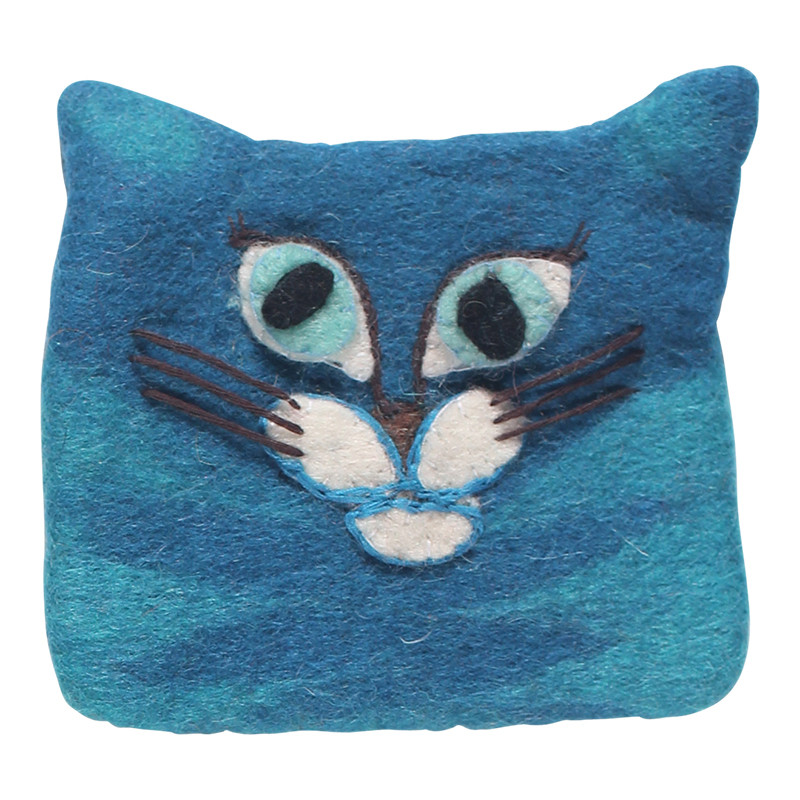 Hand felted & appliqued cat coin purse. Zippered closure, 100% cotton lining. Handmade in Nepal.