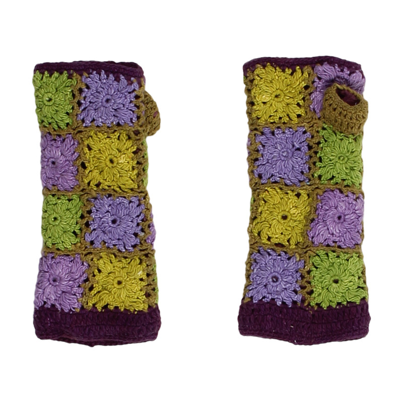 Thamel wrist warmers with thumb-hole. Crocheted by hand in Nepal using 100% cotton with EU approved dyes. Lined with poly-fleece.